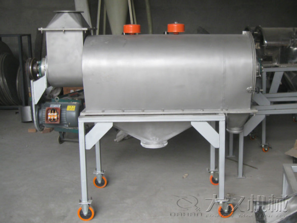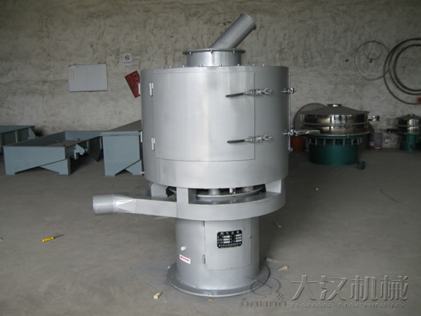 我公司生產(chǎn)的氣旋篩由于形狀為橫臥狀所以也叫臥式氣流篩,網(wǎng)為圓筒狀,置于機(jī)體內(nèi),物料通過(guò)螺旋輸送系統(tǒng)后,和氣流混合、霧化進(jìn)入網(wǎng)筒內(nèi);通過(guò)網(wǎng)筒內(nèi)風(fēng)輪葉片使物料同時(shí)受離心力和旋風(fēng)推進(jìn)力,從而近使物料噴射過(guò)網(wǎng),由細(xì)料排出口排出,不能過(guò)網(wǎng)的物料沿網(wǎng)筒壁從粗料排出口排出。