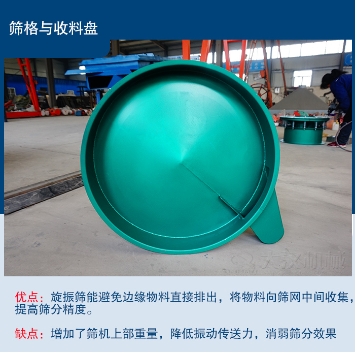 篩格與收料盤的利弊及適用范圍,旋振篩能避免邊緣物料直接排出,將物料向篩網(wǎng)中間收集,提高篩分精度。但它增加了篩機(jī)上部重量,降低振動(dòng)傳送力,消弱篩分效果。如果收料盤崩裂,增加了售后成本。